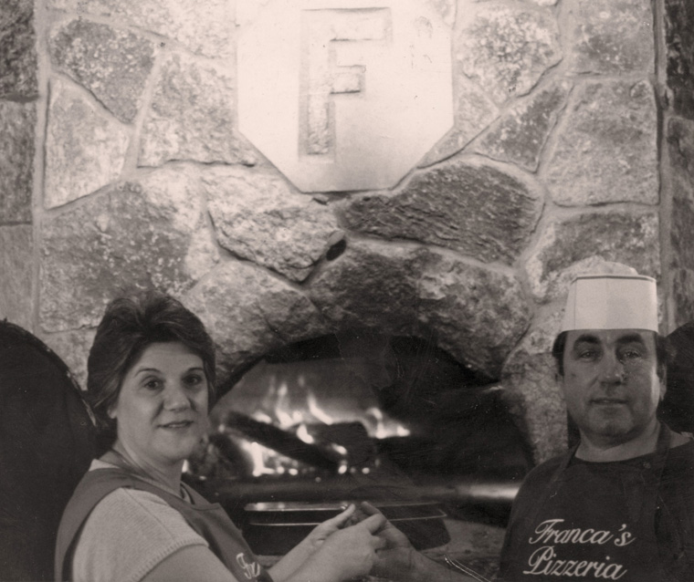There is much to be said about the relationship between food and love. For Frankie and Kara Cecchinelli, co-owners of Figidini, the two are interwoven. Over thirty years ago Frankie’s parents, Franca and Joe, (shown in the photo below) opened their first restaurant, Franca’s, in Waltham, MA. They opened one of the first commercial wood burning oven restaurants in Massachusetts. The restaurant was such a success they decided to move to Cape Cod and open Franca’s II. With the teachings from his parents, Frankie grew up learning the skill of wood fire cooking. His passion for culinary excellence is contagious so when he met Kara it wasn’t long before they were planning on continuing the tradition of wood fire cooking.